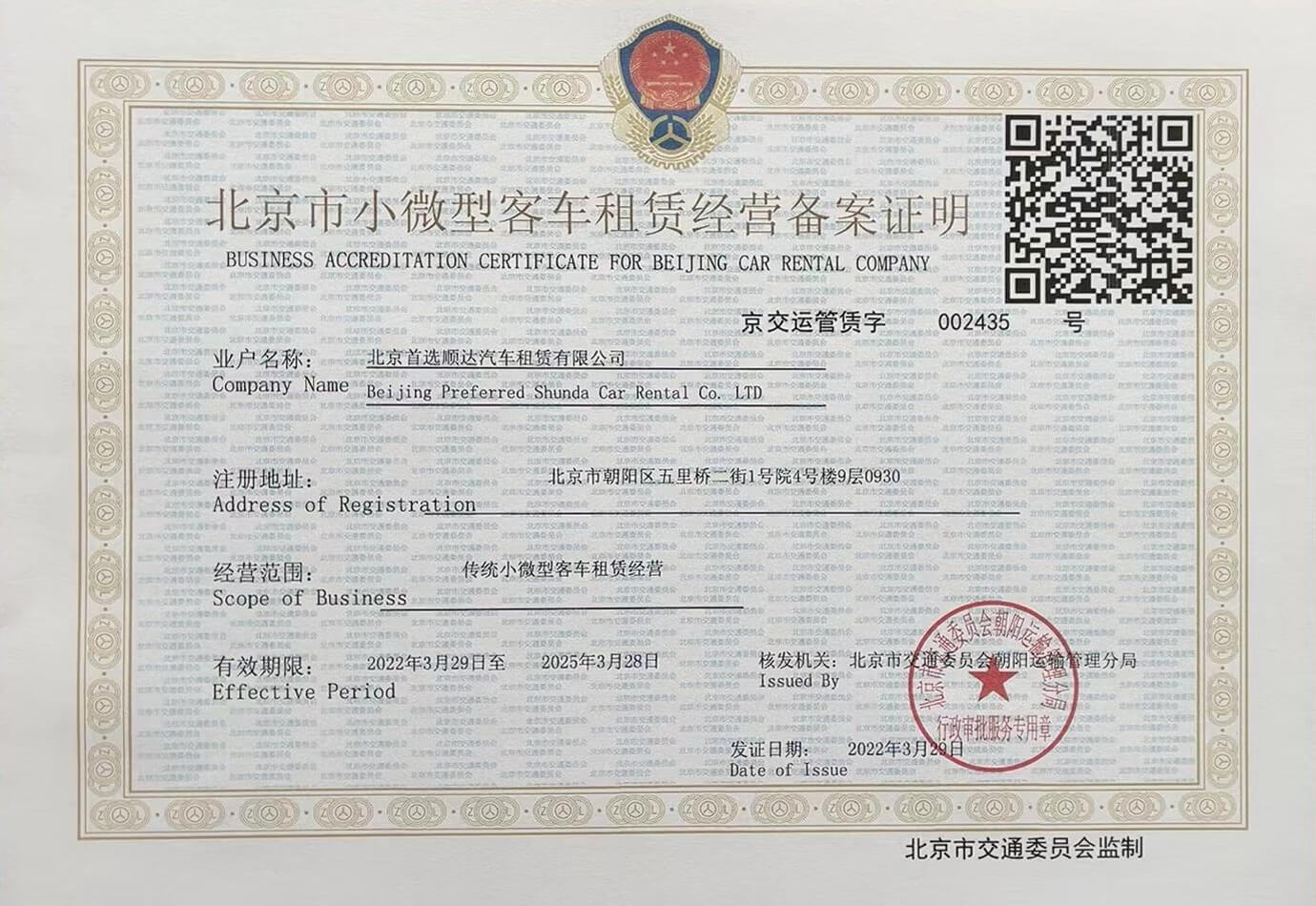 北京首選順達汽車租賃有限公司 一 經(jīng)營備案證明